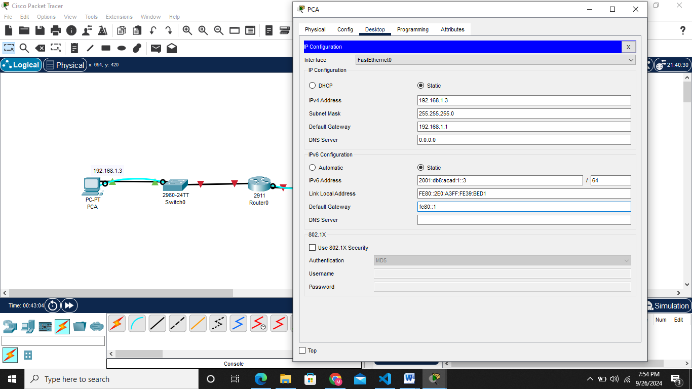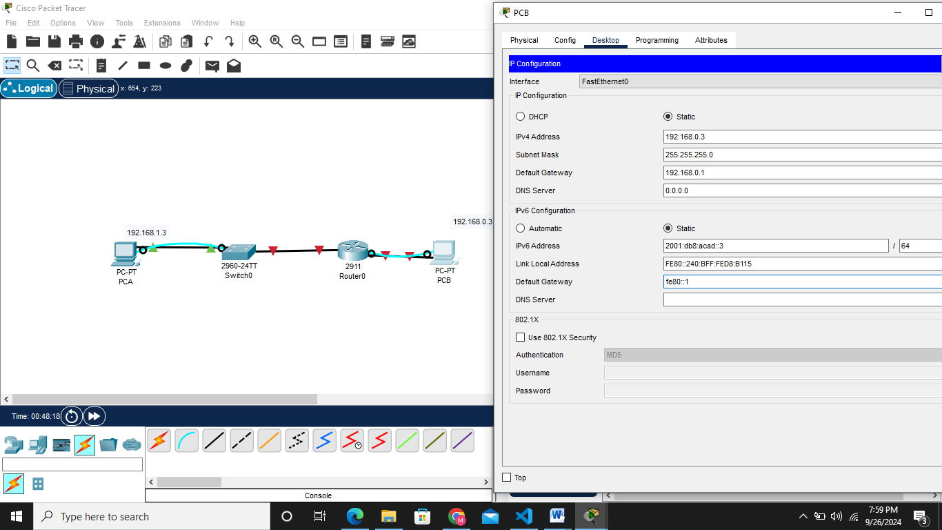 Build the topology in Real-time mode in acket tracer Choose the required devices and set them as shown below